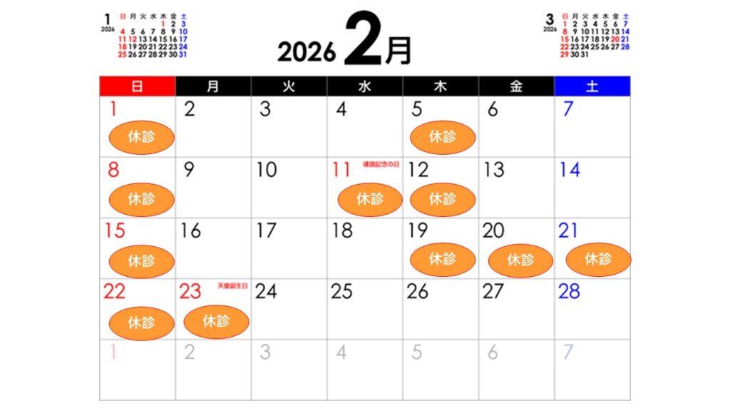 2月の休診日のお知らせ