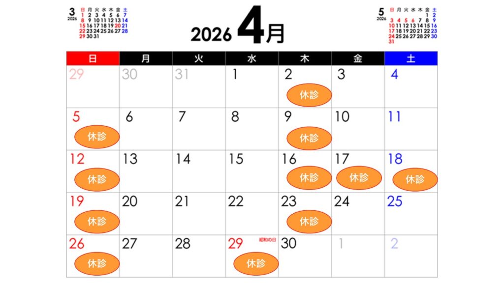 4月の休診日のお知らせ